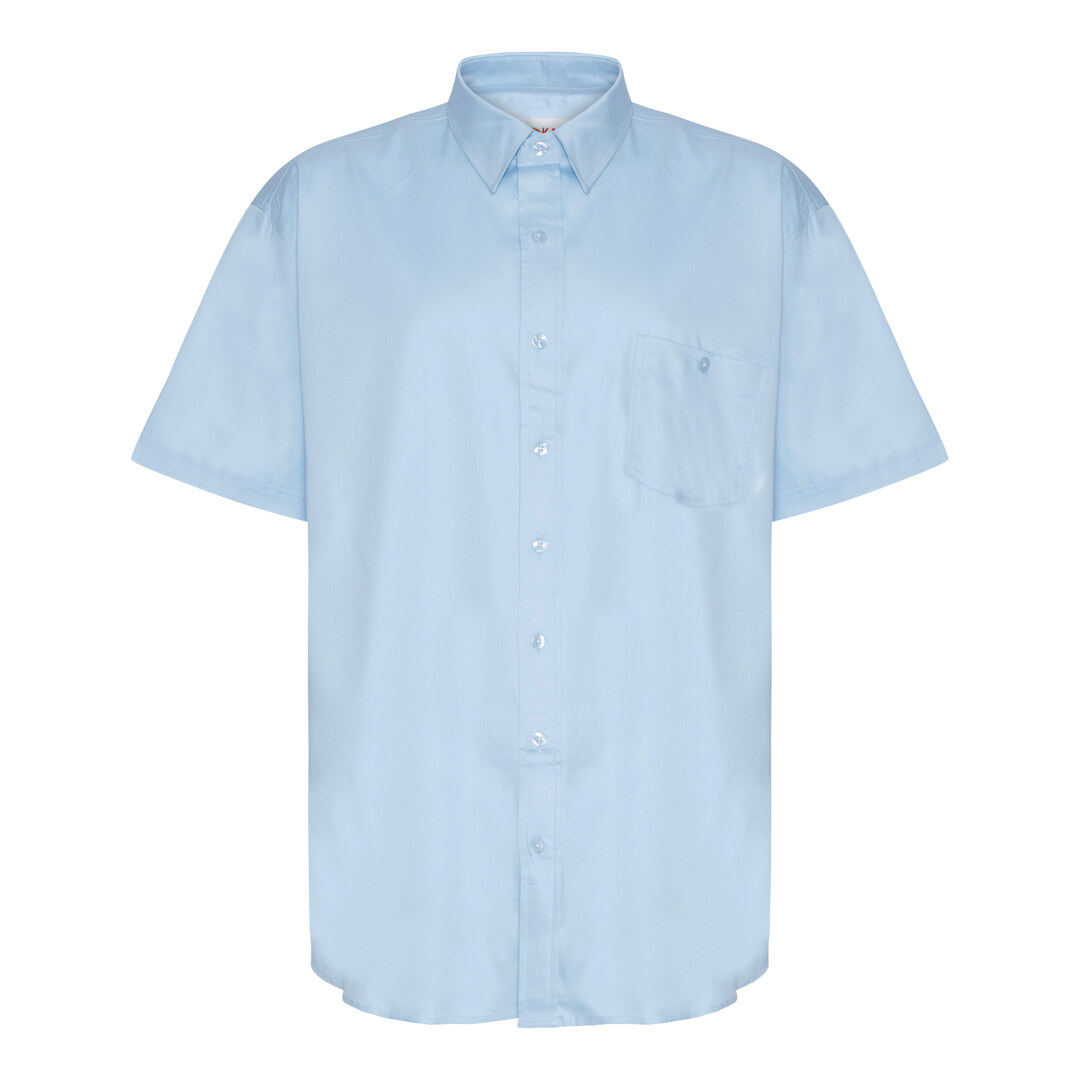 Lys blå kortærmet satin/lycra skjorte (TALL)