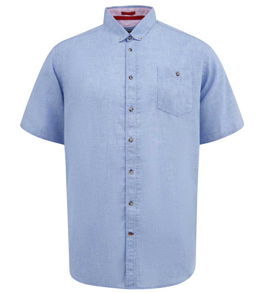 Kortærmet skjorte fra D555 designet til den høje mand, hvor længden er tilpasset både krop og ærmer. Skjorten har et diskret ternet mønster i en lys blå nuance, der giver et roligt og velklædt udtryk.