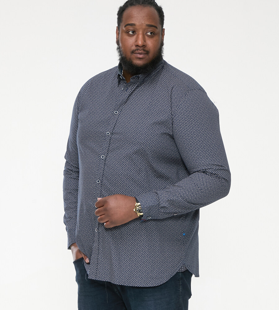 Langærmet skjorte fra D555 i mørkeblå med småmønstret print i sandfarve. Skjorten har klassisk krave, knappelukning og en lige pasform, der giver god komfort og bevægelsesfrihed. Det lette materiale gør den behagelig at have på, både til hverdag og pænere anledninger. Det diskrete mønster giver et stilrent udtryk med lidt ekstra karakter.