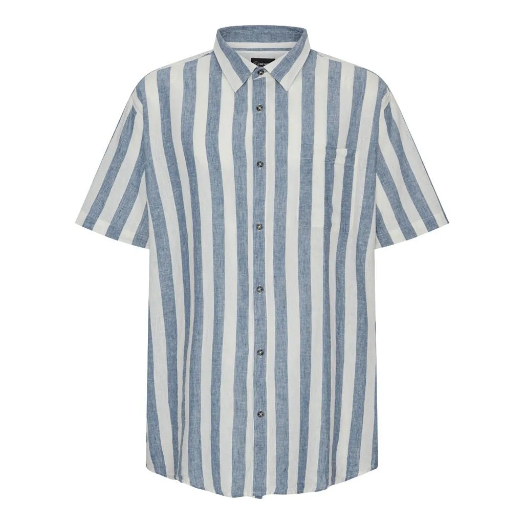 Hvid og blåstribet hør/bomuld skjorte