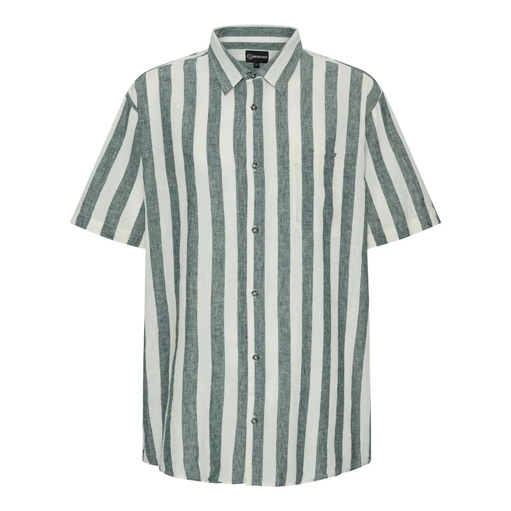 Hvid og grønstribet hør/bomuld skjorte