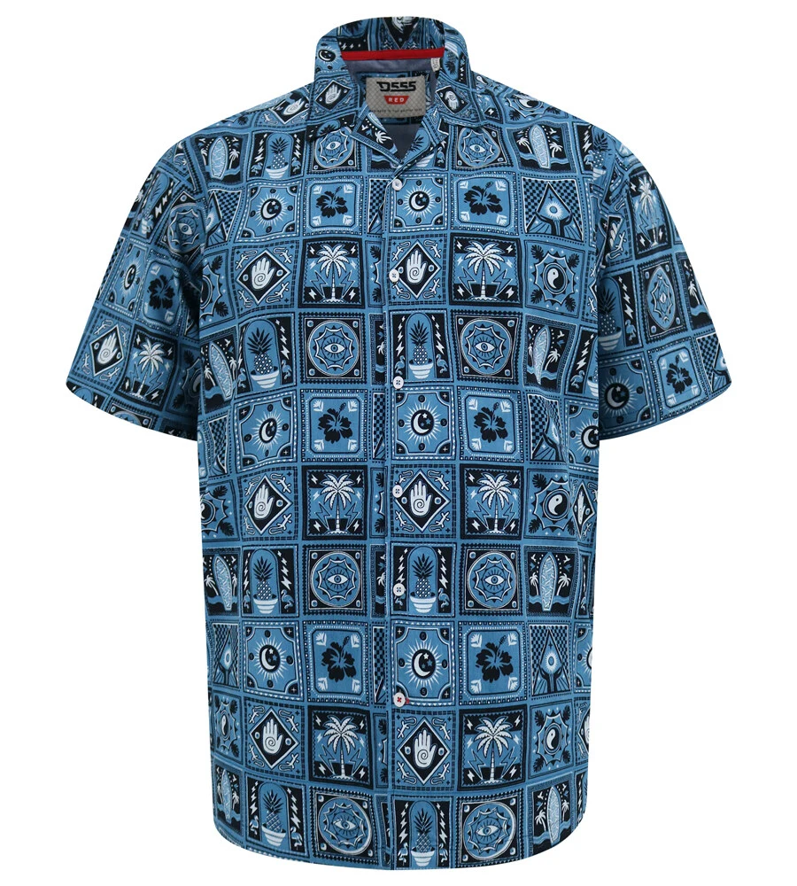 Skjorte fra D555 med et iøjnefaldende grafisk mønster i forskellige blå nuancer. De firkantede felter med små motiver giver skjorten et unikt og moderne udtryk, der skiller sig ud uden at blive for voldsom.