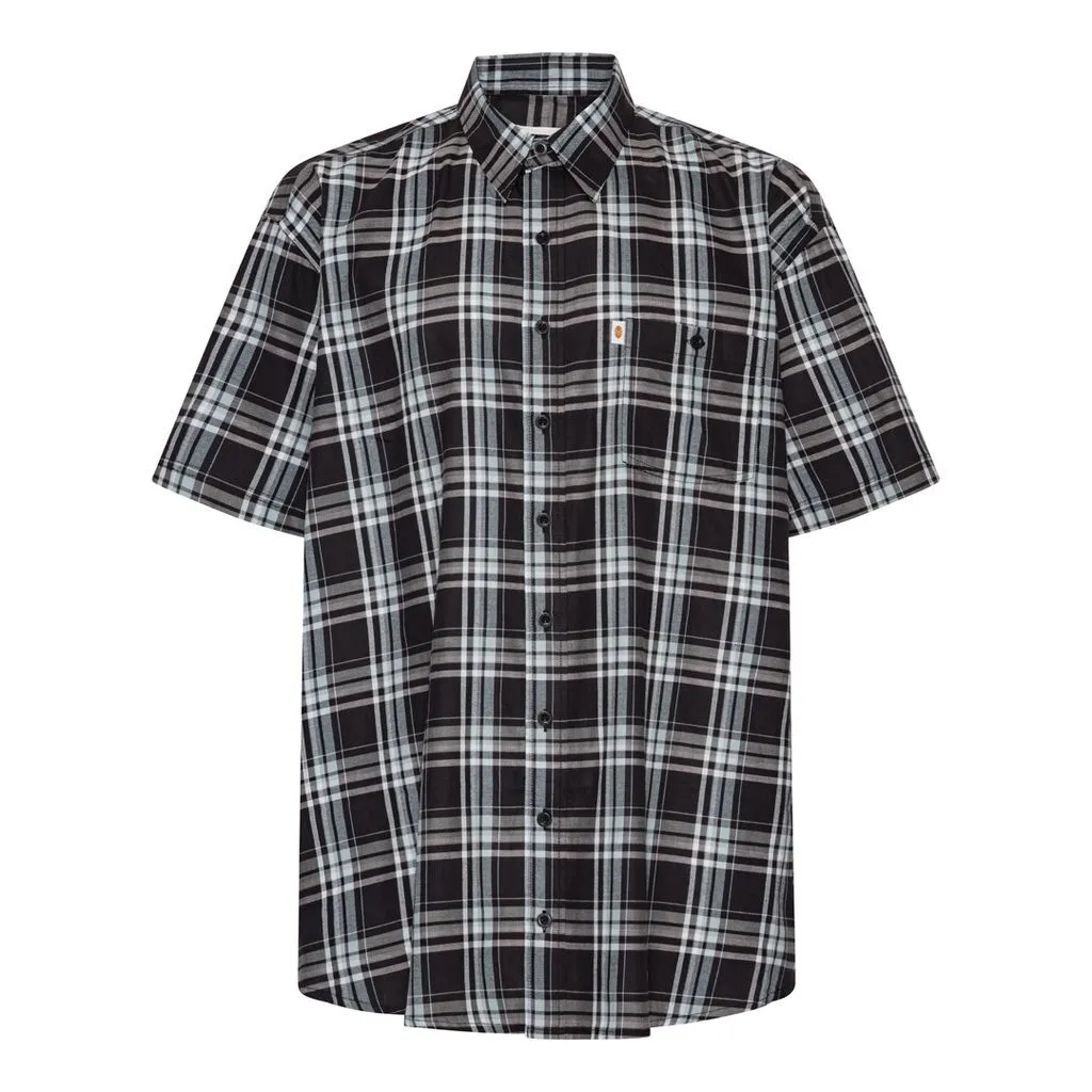 Kortærmet skjorte med sorte, hvide og grå tern