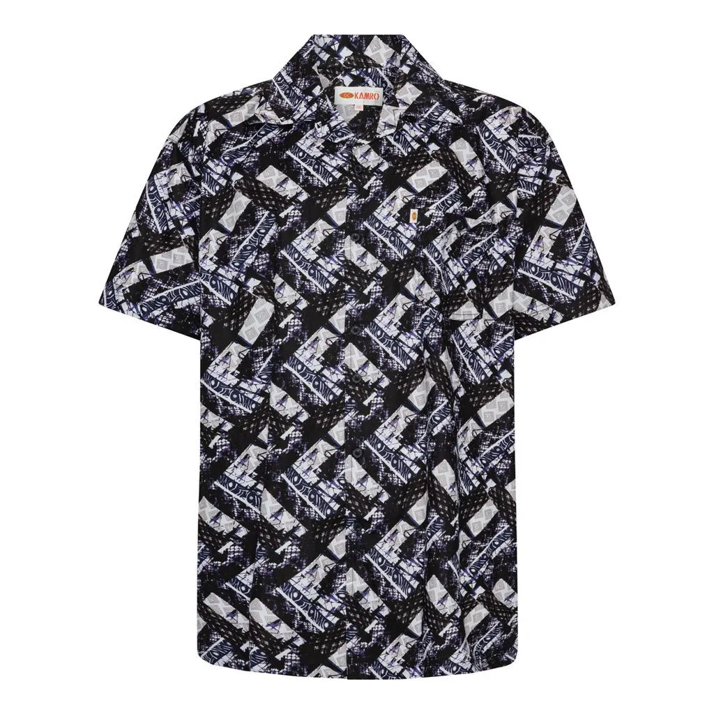Kortærmet skjorte fra KAMRO med et markant grafisk mønster i sort og hvid, der giver et moderne og stilfuldt udtryk. Skjorten er designet med en afslappet cubakrave, gennemgående knaplukning og en praktisk brystlomme, som fuldender det pæne, men uformelle look.