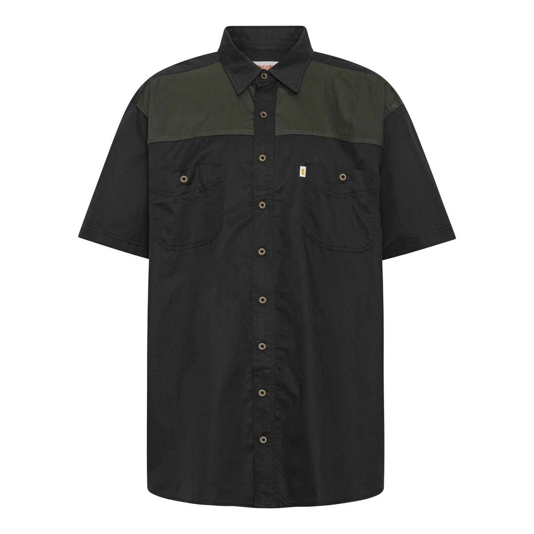 Kortærmet skjorte fra KAMRO med et råt og afslappet udtryk. Designet med to praktiske brystlommer og kontrastfarve over skuldrene, som giver skjorten karakter og kant. Den er velegnet til både arbejde og fritid og fungerer lige godt lukket eller åben over en T-shirt.