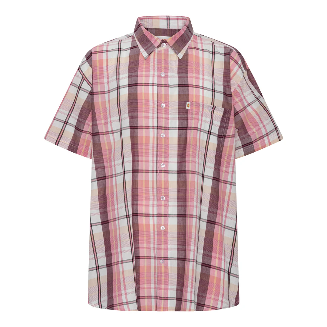 Frisk og farverig skjorte fra KAMRO med korte ærmer og klassisk ternet mønster i rosa, sand og hvide nuancer. Den almindelige krave og brystlommen fuldender det afslappede hverdagslook, som også sagtens kan bruges til pænere lejligheder. Skjorten har en komfortabel pasform og er et oplagt valg, når du vil have lidt farve ind i garderoben.