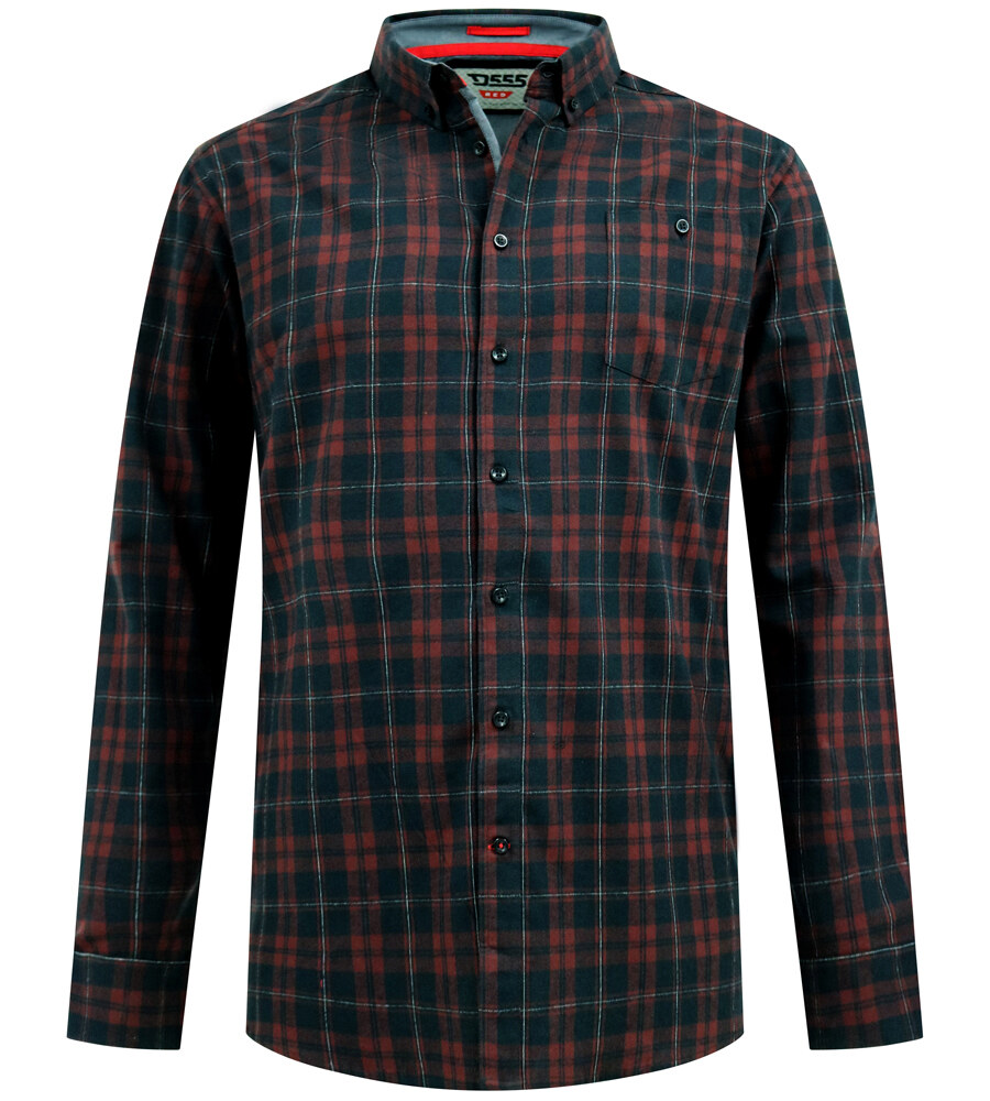 Ternet skjorte fra D555 i bordeaux og sort med fine lyse striber. Skjorten har lange ærmer, knaplukning, button-down krave og en enkelt brystlomme. Designet er klassisk og afslappet og fungerer godt både til hverdag og uformelle lejligheder, hvor du vil være velklædt uden at det bliver for formelt.