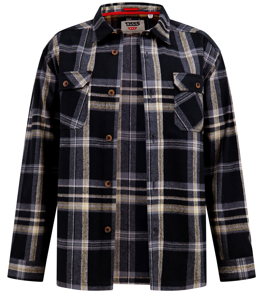 Langærmet skovmandsskjorte fra D555 i sort, grå og beige tern. Skjorten har klassisk krave, knaplukning og to brystlommer med knap. Den er fremstillet i et blødt og let børstet materiale, der giver en komfortabel fornemmelse og lidt ekstra varme. Kan bruges både som almindelig skjorte og som overskjorte over en T-shirt eller trøje.