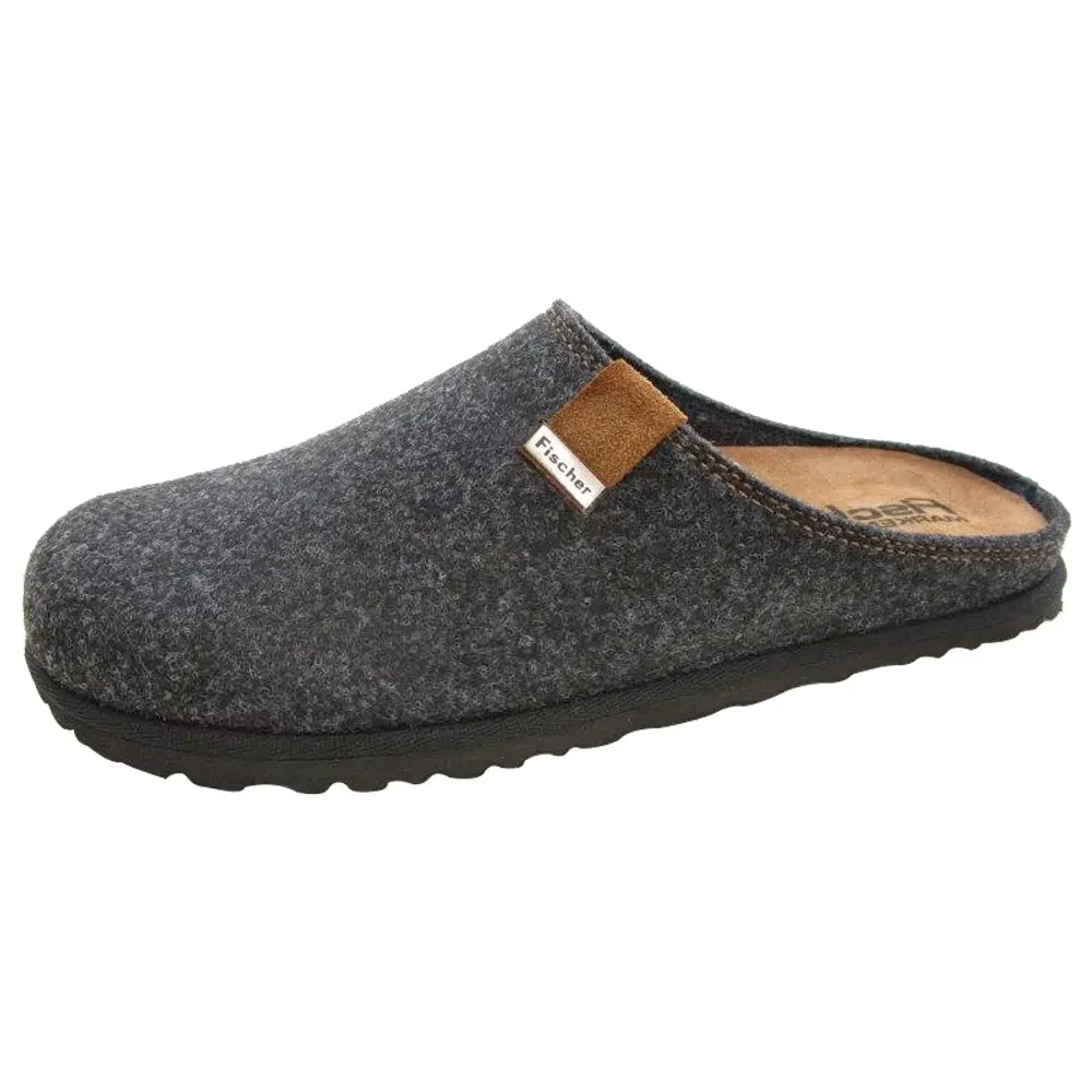 Denne mørkegrå filt-hjemmesko fra Fischer er skabt til komfort og enkel funktion i hverdagen. Overdelen er fremstillet i blød filt lavet af upcyclet PET, hvilket både er et miljøvenligt valg og giver en varm, slidstærk sko til indendørs brug. Farven er neutral og klassisk.