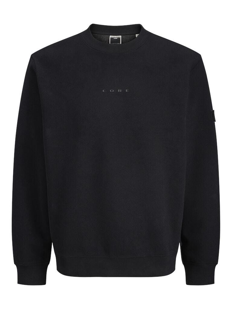 En klassisk sort sweatshirt fra Jack & Jones med et enkelt og stilrent look. Modellen har rund hals, ribkant ved ærmer og bund, og et lille logo midt på brystet. Pasformen er afslappet, og materialet føles blødt og behageligt mod huden.