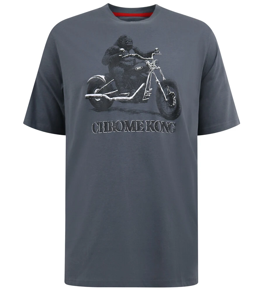 Grå T-shirt med “Chromekong” gorilla på motorcykel